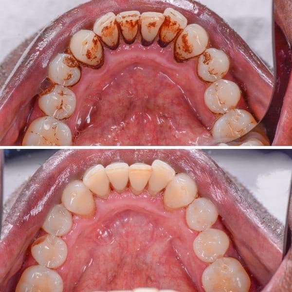 gum examination, plaque and tar removal, airflow stain removal and oral health education.